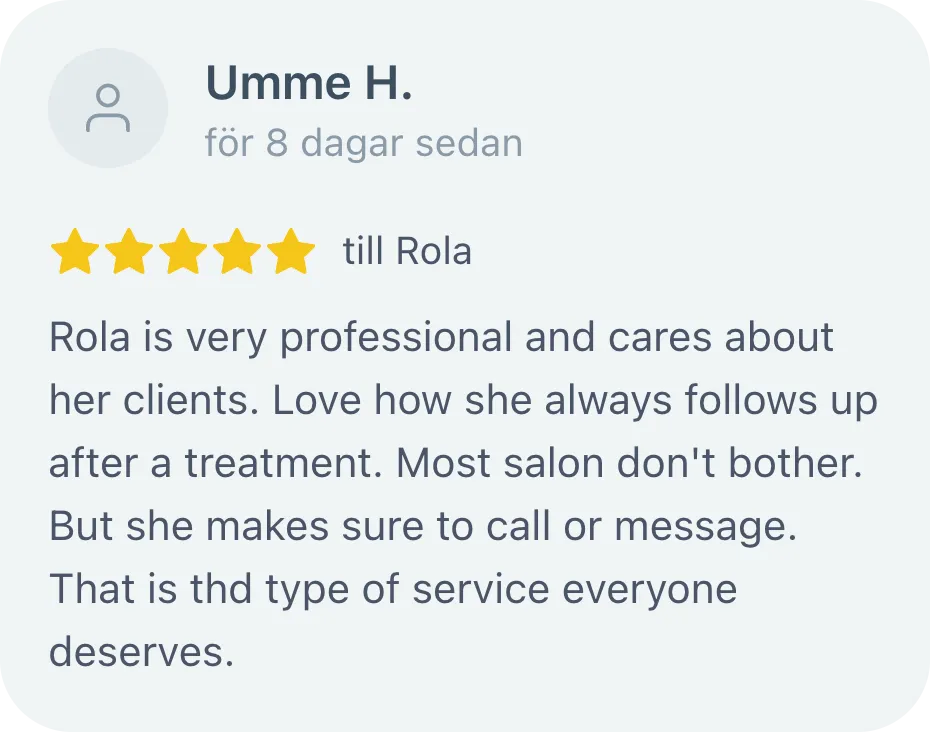 Jag gör en bedömning av din hudtyp för att säkerställa att behandling kan utföras på korrekt sätt, samt att inga kontraindikationer finns.